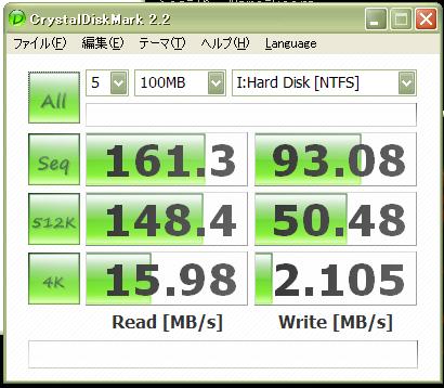 ということでcrystaldiskmark2.2の100MBの結果360a0b03.jpeg